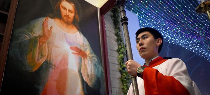 Προσκυνητές ετοιμάζονται να μπουν σε μια καθολική εκκλησία στο Πεκίνο