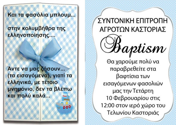 Θα χαρούμε πολύ να παραβρεθείτε στη βάπτιση των εισαγόμενων φασολιών και μήλων μας την Τετάρτη 10 Φεβρουαρίου στις 12:00 στον ιερό χώρο του τελωνείου Καστοριάς.
